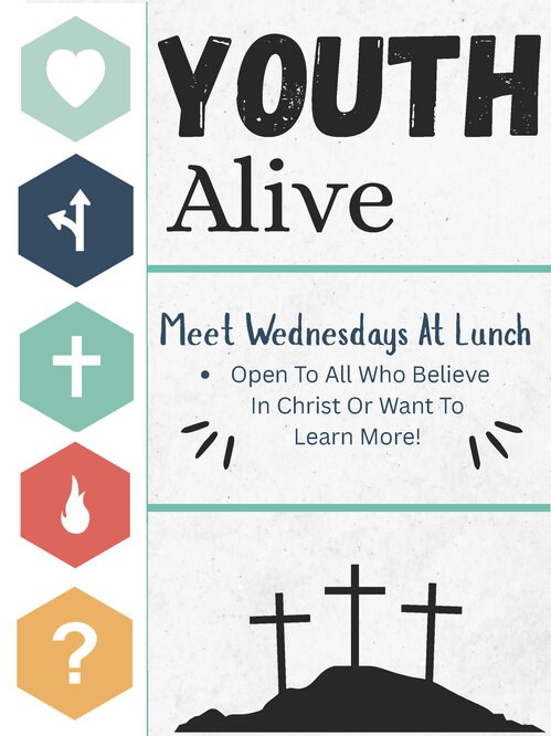 Youth Alive® works to help students reach students and to connect churches to schools to make Jesus known in every community. Youth Alive equips students to effectively spread the message of hope to their peers by emphasizing four elements.